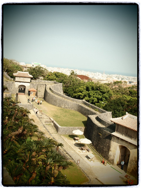 首里城是皇室成員的住所,位在一座小山丘頂,旁邊是多層結構的弧形圍牆
