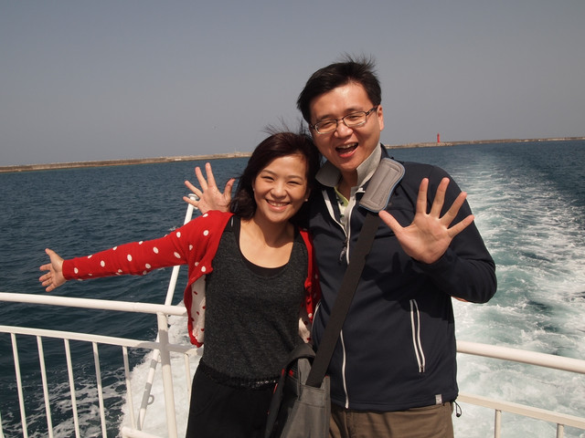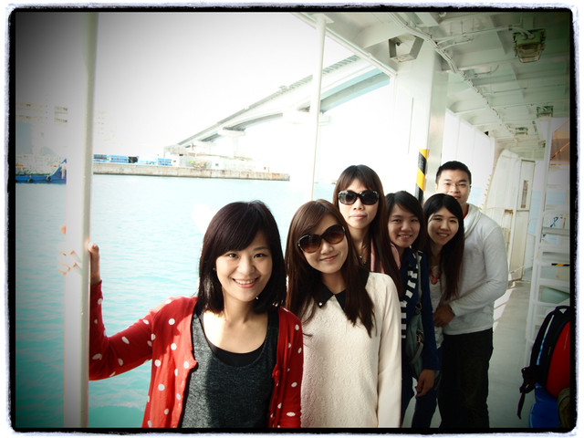 到海中央時 工作人員喚我們坐到船艙內