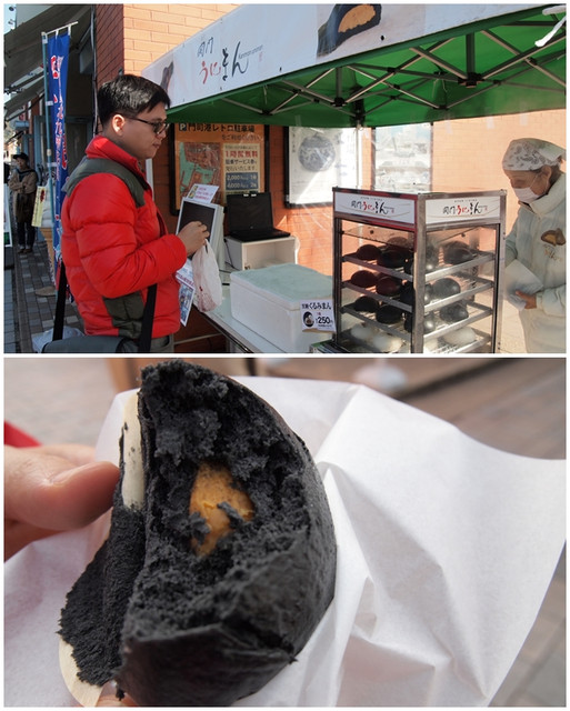 又看到這黑黑的包子,吃起來甜甜的,滿好吃的~(不知道是啥吃的這樣開心@@;)
